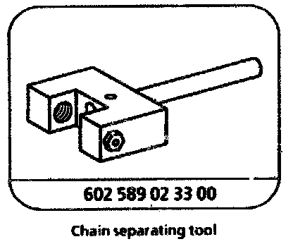 2 Screw thrust spindle (02) 602 589 05 63 00 together with thrust pin (02a) 602 589 05 63 01 into the chain separation tool (03) 602 589 02 33 00.