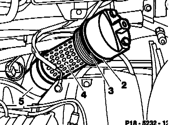 6 Insert oil filter cartridge (4) into oil filter housing (5).