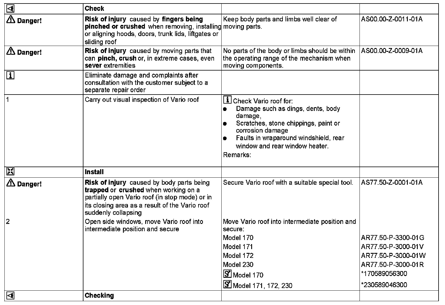 170 589 05 63 00, Assembly support for Vario roof
