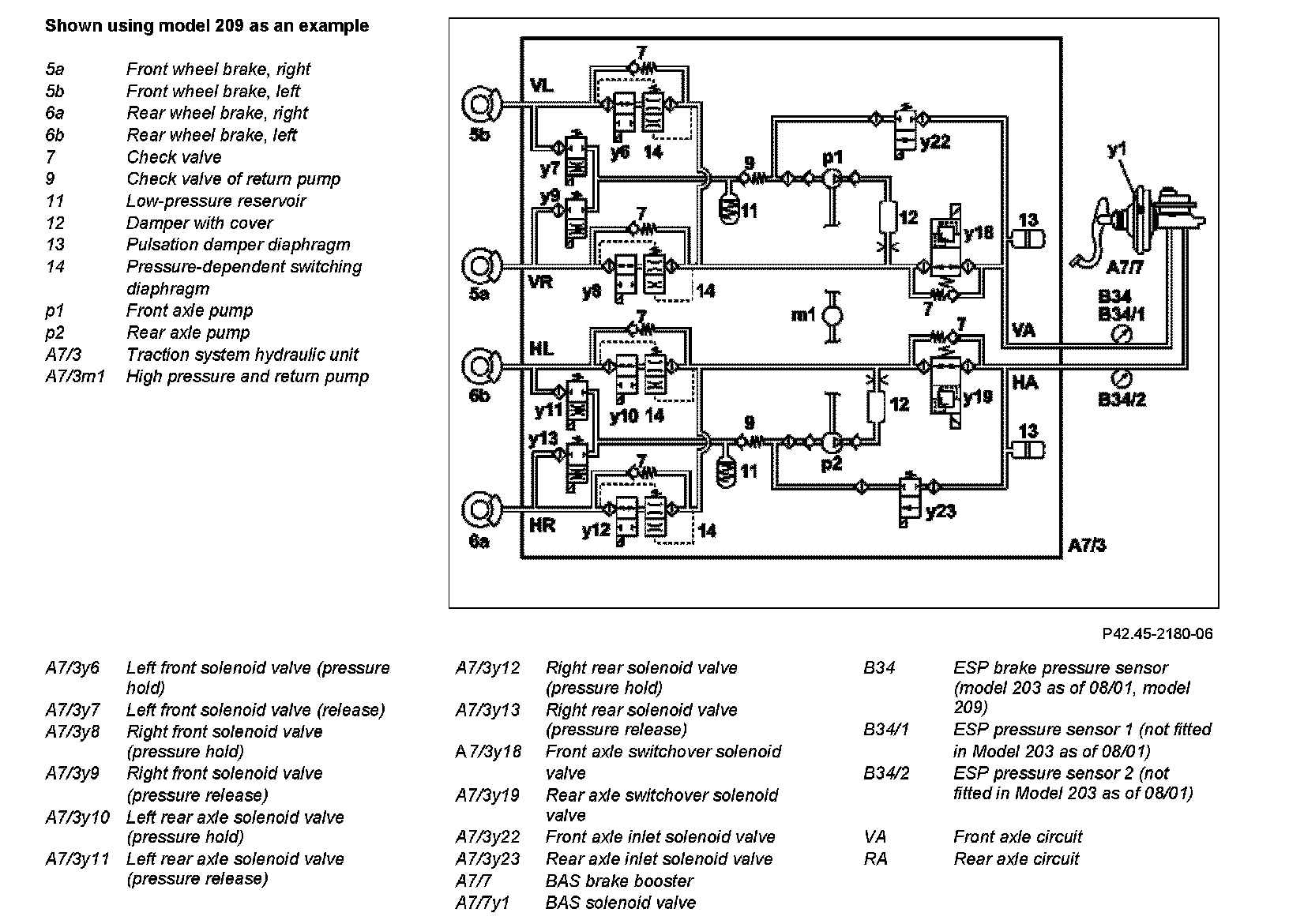 ESP Electronic Stability Program Mk25 (model 203 as of 8/01, model 209) has only one brake pressure sensor (B34) which monitors the front axle circuit.