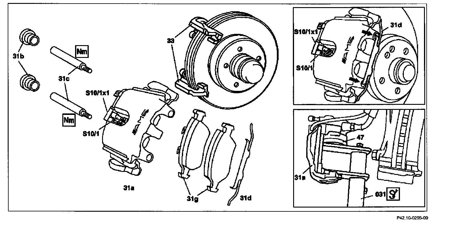 - Only complete sets of brake pads (31g) approved by Mercedes-Benz may be installed.