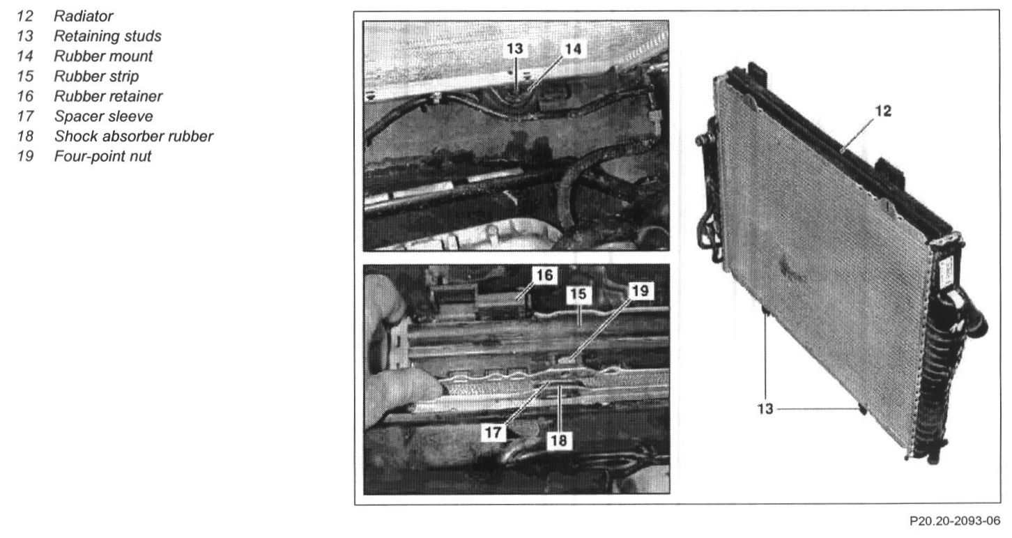 - That the retaining studs (13) of the radiator on bottom right and left are located in the rubber mounts (14).