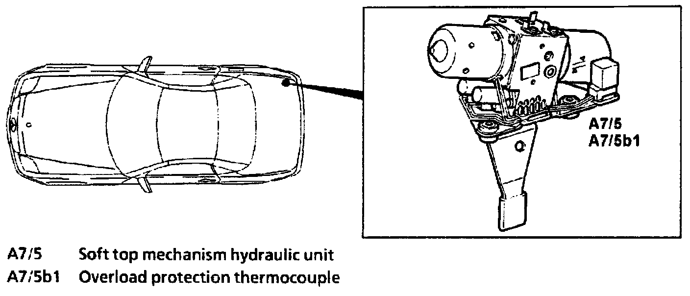 Integrated into soft top mechanism hydraulic unit (A7/5).