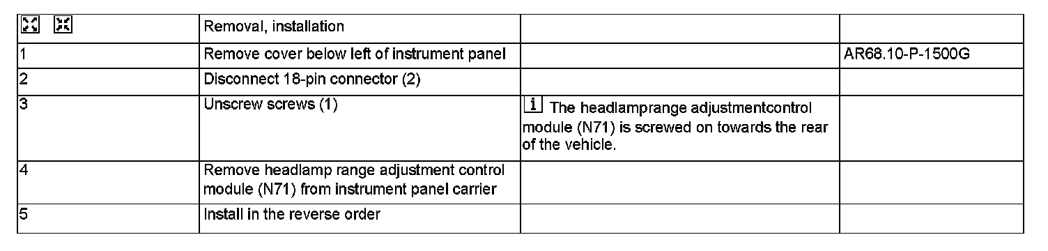Removing And Installing Headlamp Range Adjustment Control Module
