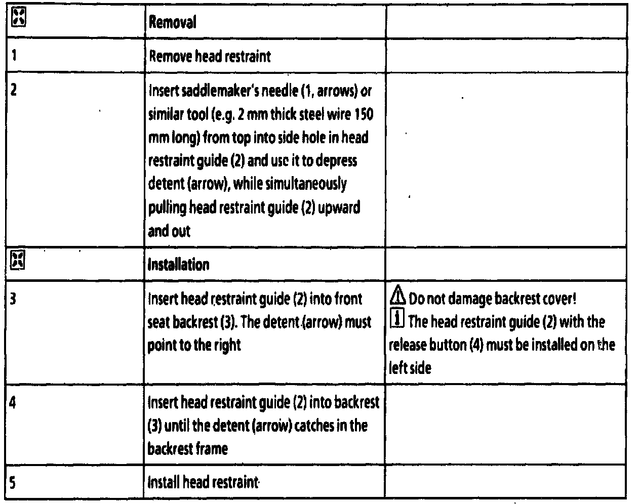 Head Rest: Service and Repair