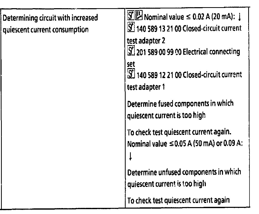 If total current consumption is <= 0.05 A or <= 0.09 A (vehicles with alarm system code 551), end of test: