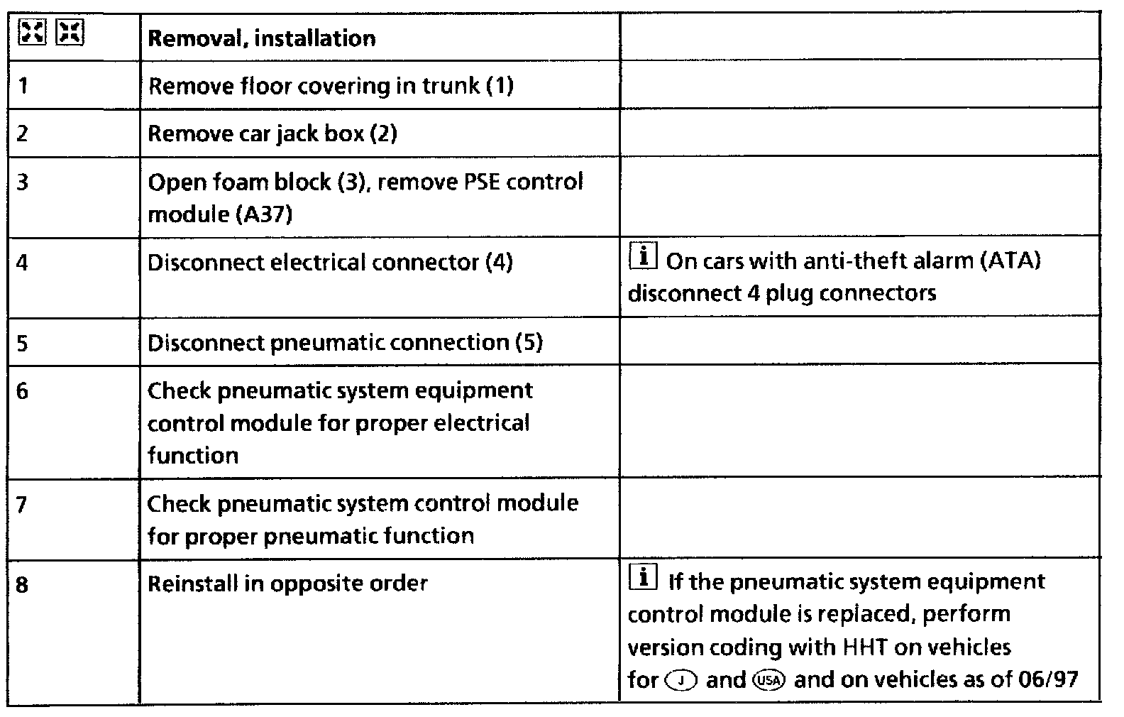 Removing and installing pneumatic system equipment (PSE) control module (A37/2-A37/5)