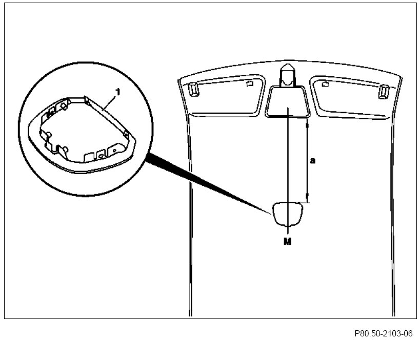 1 Place reinforcing frame (1) of interior motion sensor transmitter/receiver (A26/14) on the insider of the roofliner as shown in figure and center.