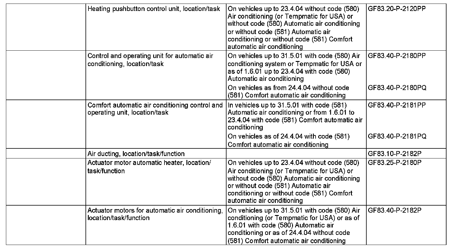 When the ignition is switched off, the fresh air/air recirculation flap is automatically moved into a 50 % fresh air and 50 % recirculated air position. This achieves a significant reduction in the flap closing forces.