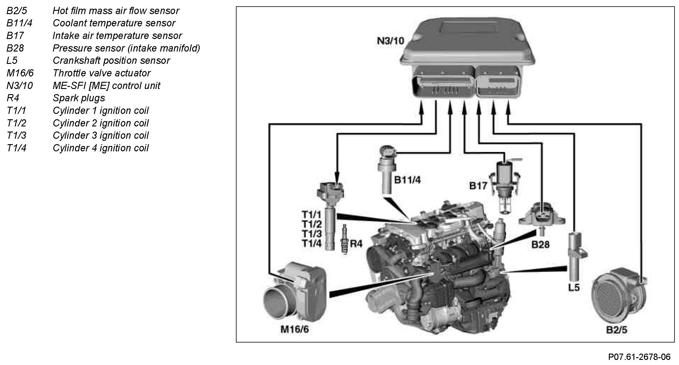 The correction by retarding the ignition timing is map-controlled by the ME control unit.