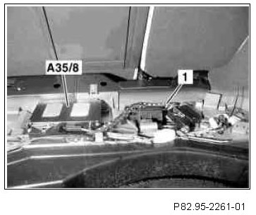 2 Connect adapter line (1) with coupling to the open connection on the E-call control module (A35/8).