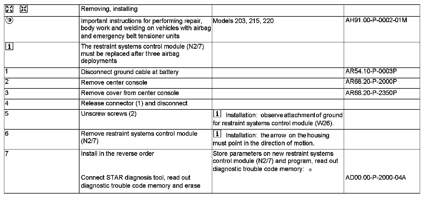 AR91.60-P-0622P Remove/Install Control Module For Airbag/Belt Tensioner