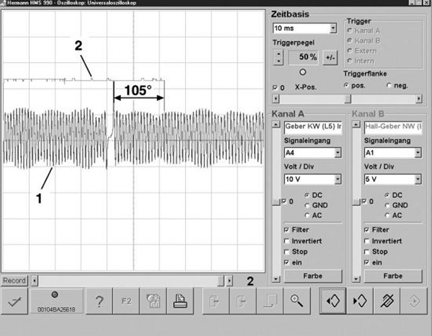 - Signal 2 = Signal from component B6/7 (Right exhaust camshaft Hall sensor)