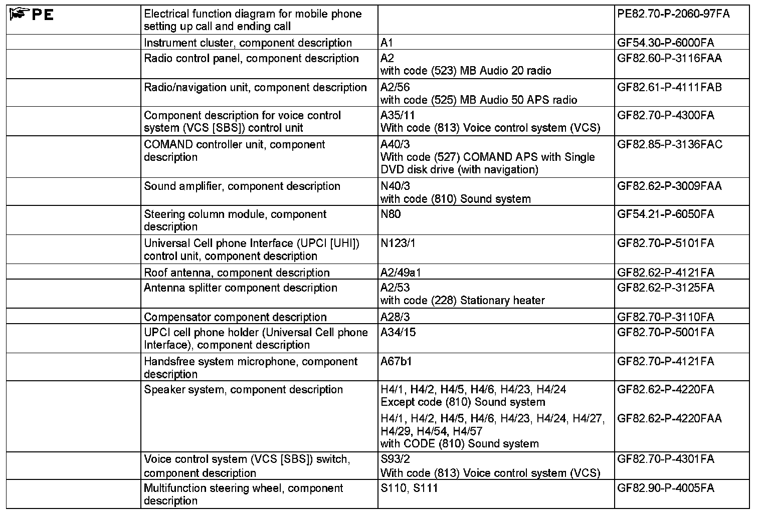 - Radio and navigation unit (A2/56), with code (525) MB Audio 50 APS radio