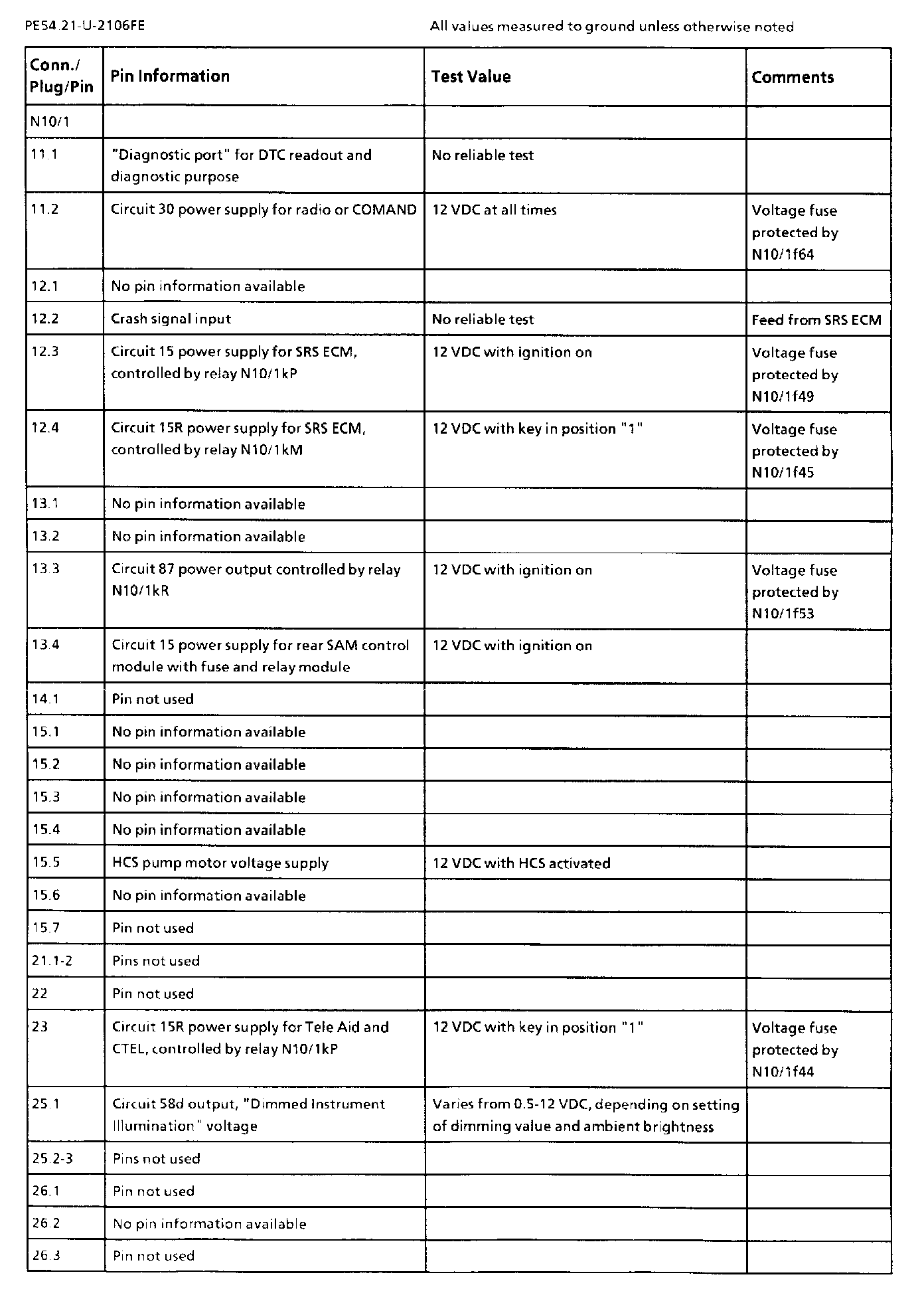 Connectors 11 - 15, 21, 23 - 26 PE54.21-U-2106FE (Sheet 5)
