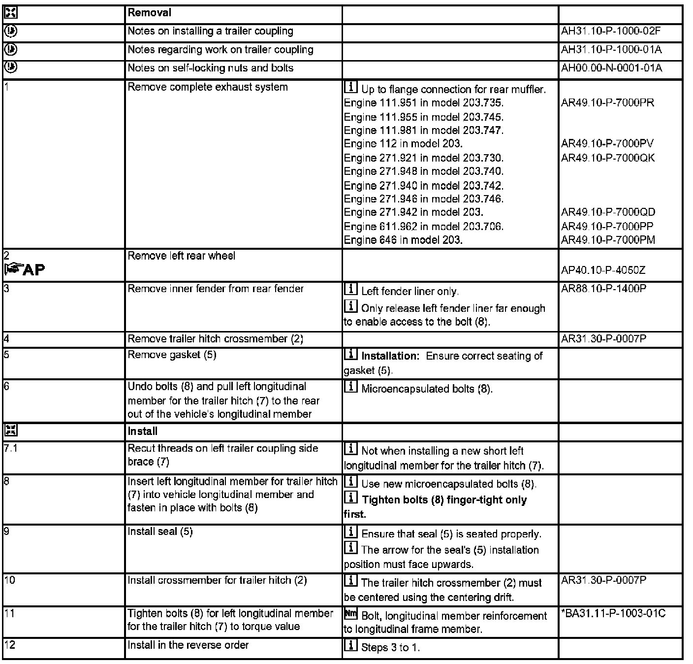 AR31.30-P-0005PB Remove/Install Left Trailer Hitch Longitudinal Member
