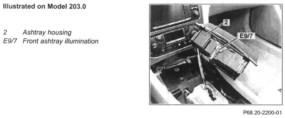 4 Disconnect front ashtray illumination (E9/7) connector from ashtray housing (2)