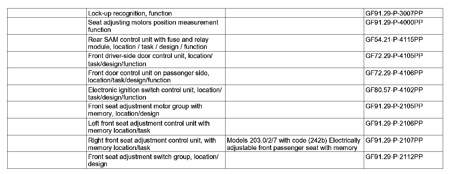 - with CODE (242) Electrically adjustable front passenger seat with memory