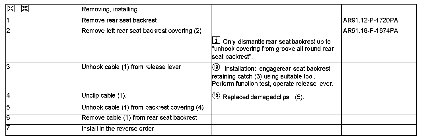 AR91.12-P-1734PA Remove/Install Rear Seat Backrest Release Cable