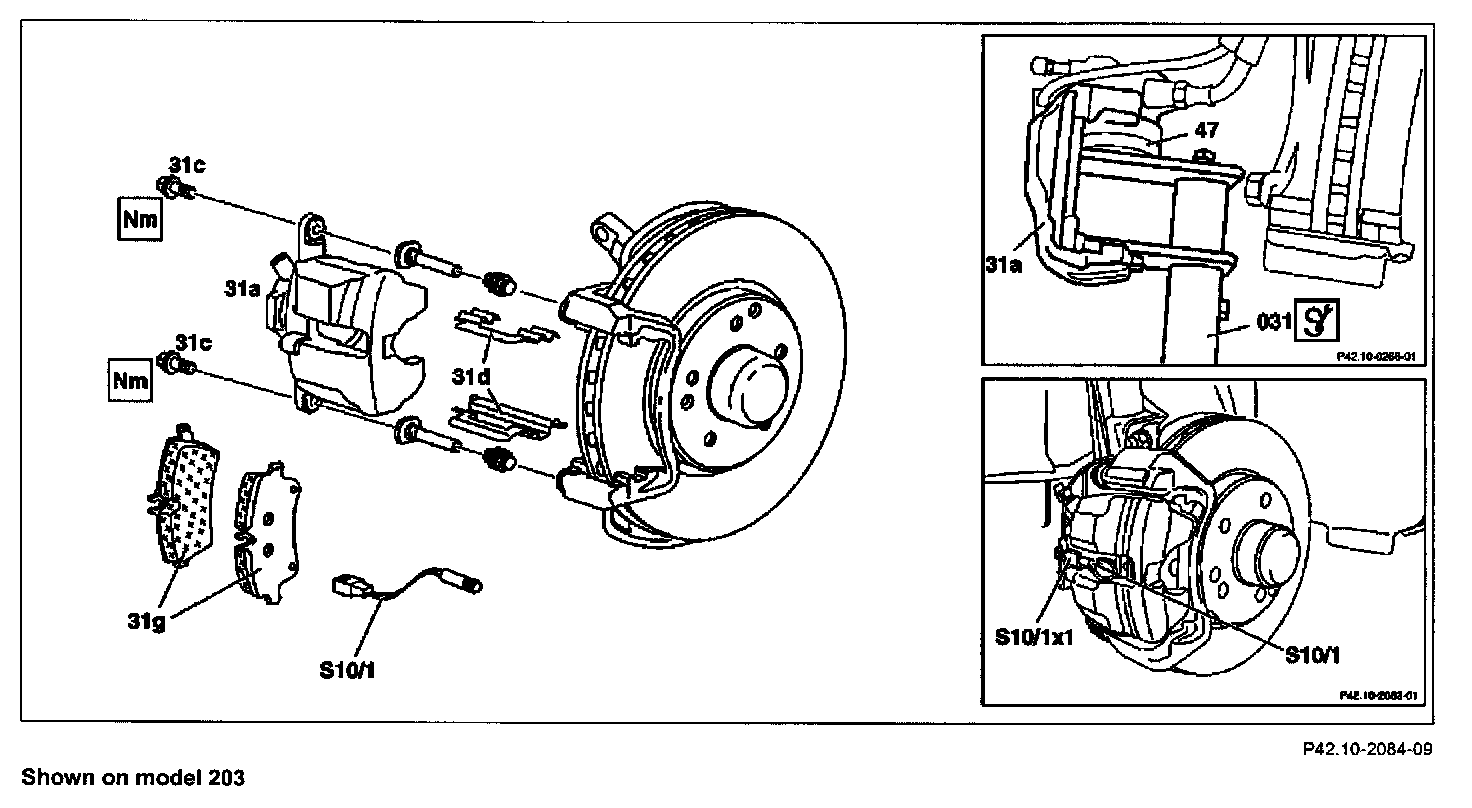 CAUTION: Installation: Only brake pads approved by Mercedes-Benz may be fitted in sets.