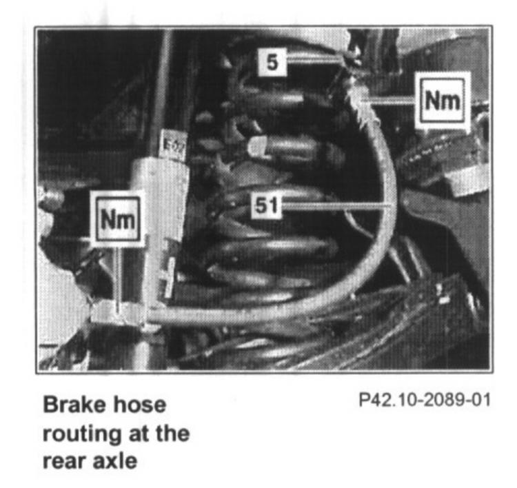 2 Unscrew brake line (5) from brake hose (51) and seal off openings