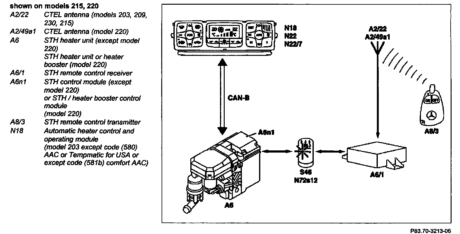 5 The STH or heater booster control module (A6n1) recognizes the cut-in signal and starts the heat or ventilate inquiry in the operating and control module (N18, N22 or N22/7) via the CAN Class B (CAN-B).