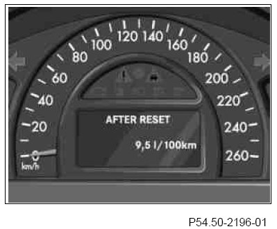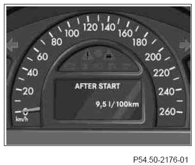After resetting it can take up to 3 kilometers/miles or 2 minutes until sufficient data is available in order to calculate the consumption correctly and display it. During this time, depending on the unit setting (miles or kilometers) and the national variant coding of the instrument cluster (A1), the display shows 5.8 MPG, 40 L/100 km or 2.5 km/L.