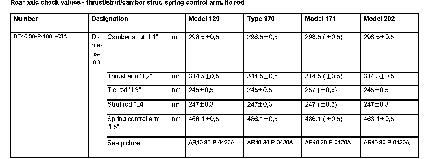 AR40.30-P-0420A Checking Alignment of Spring Control Arm, Camber Strut, Strut Rod, Thrust Arm and Tie Rod on Rear Axle
