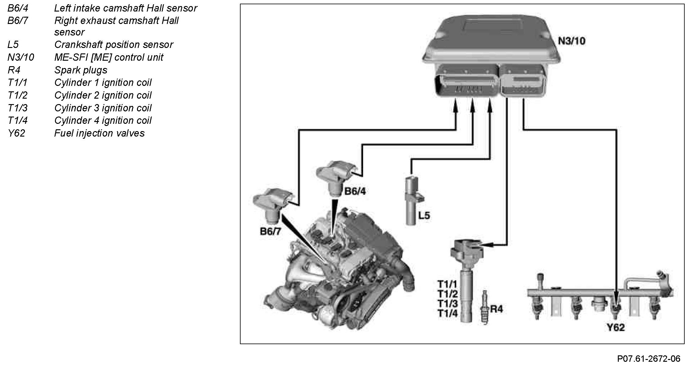 Synchronization of the injection and firing order is processed by the ME-SFI [ME] control unit for actuation of the ignition coils and the fuel injection valves.