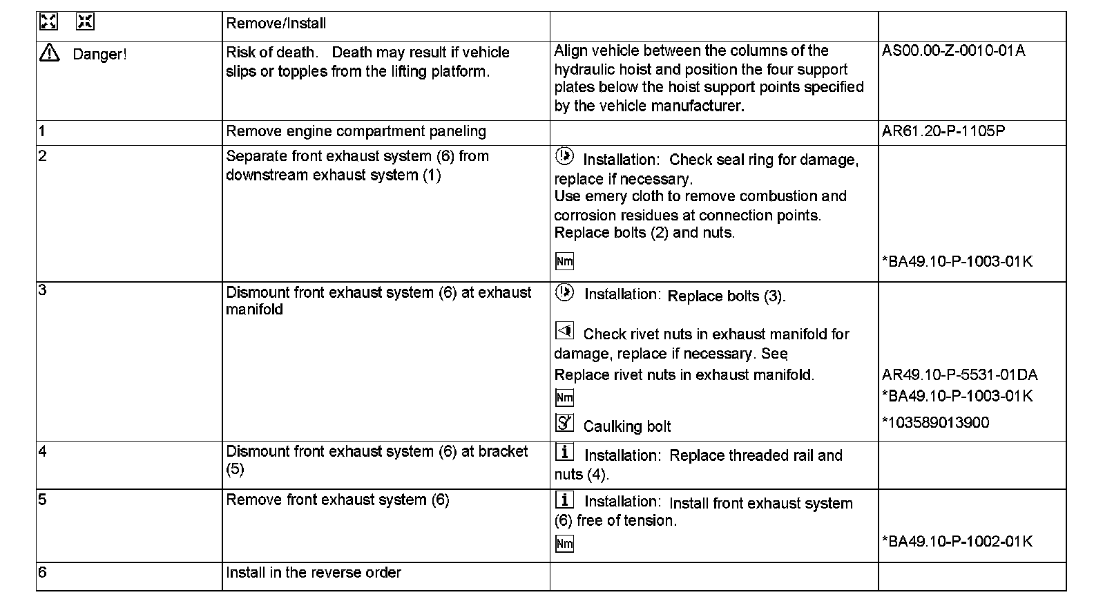 AR49.10-P-5531QK Remove/Install Catalytic Converter or Front Exhaust System