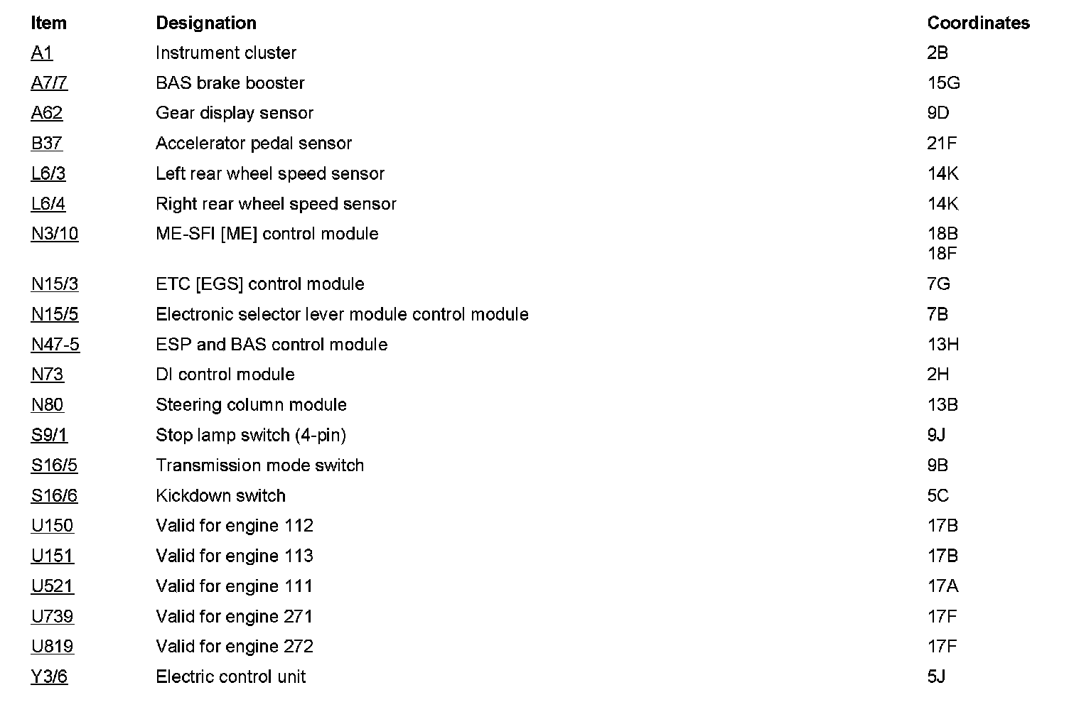 Component Description/Coordinates, A1 To Y3/6: