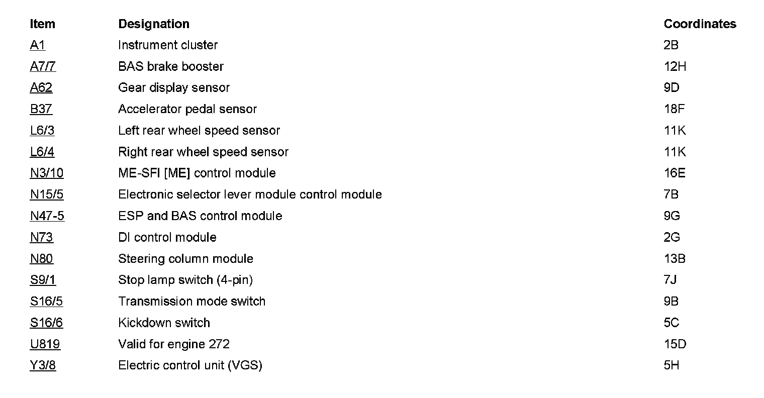 Component Locations: Component Location photographs can be found via their component names at the vehicle level. Component Locations