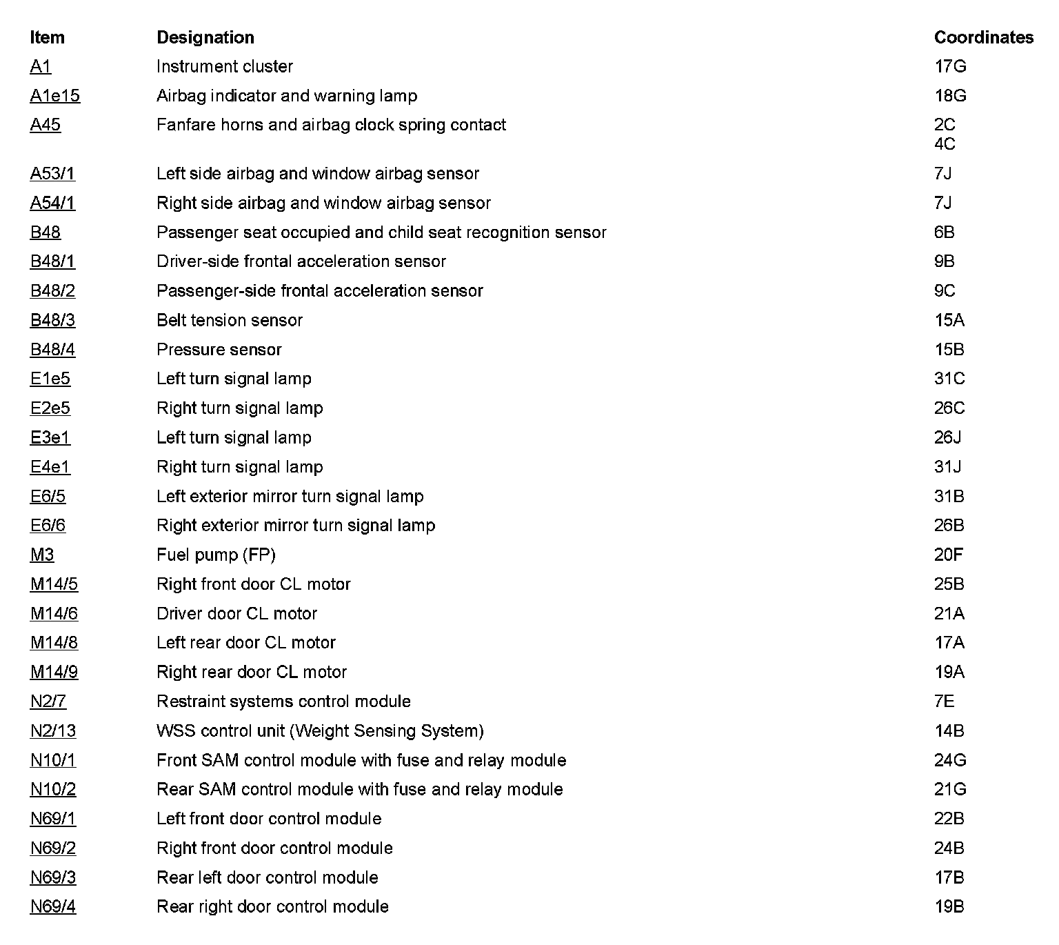 Component Description/Coordinates, A1 To N69/4: