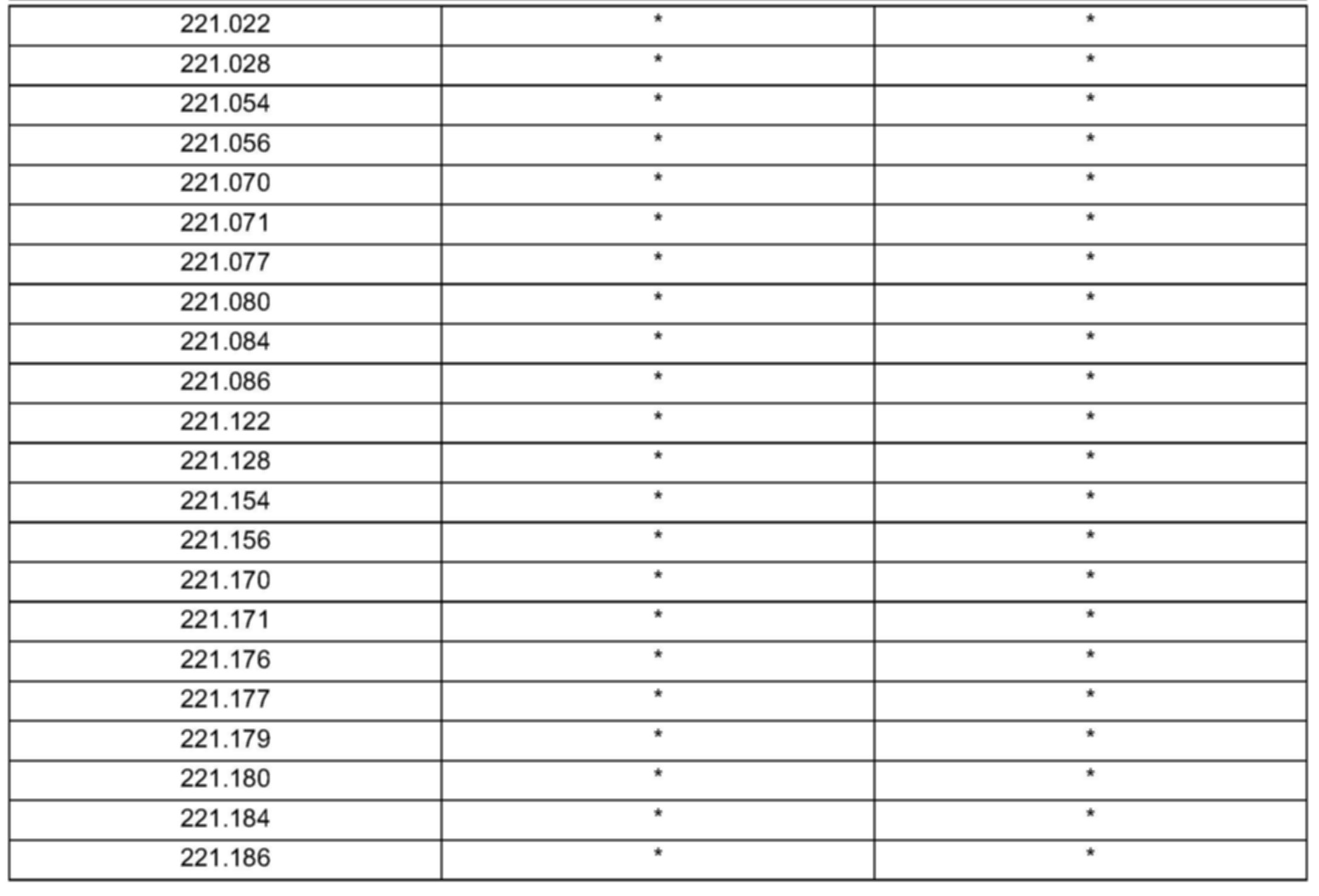 Validity Model series 203, 211, 219, 221 produced up to Wk 41 (2006)