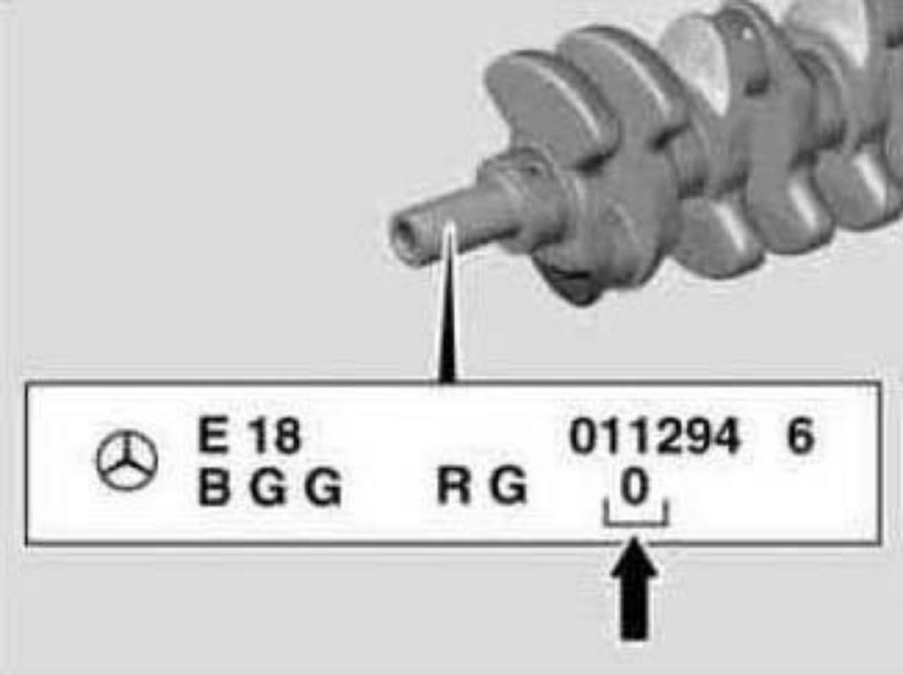 ^ Fourth letter "R" : A crankshaft bearing shell with the color codinged must be inserted in the crankshaft bearing cap (4).