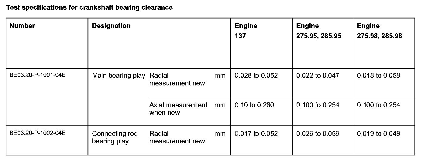 BE03.20-P-1000-04E Test Specifications For Crankshaft Bearing Clearance