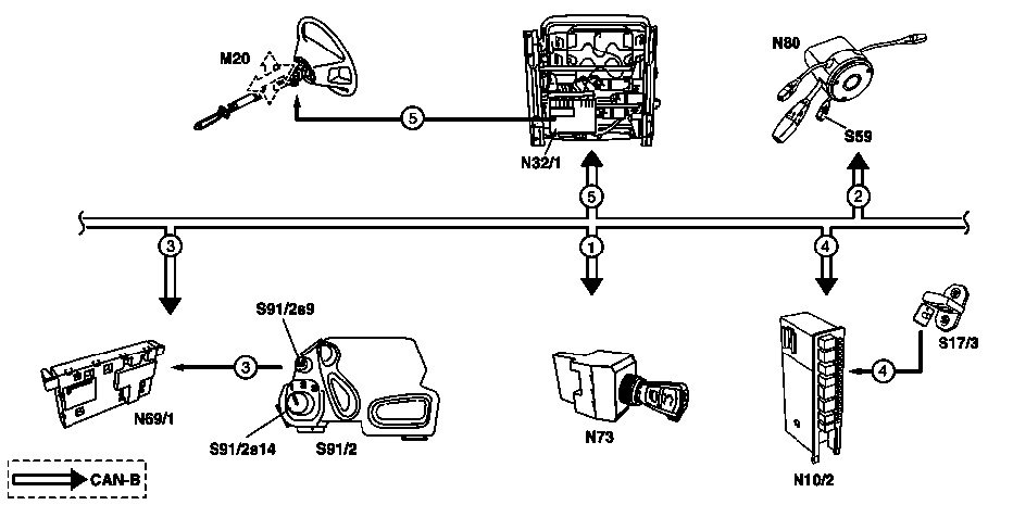 The adjustment requirements are transmitted from the steering column module (N80) via CAN-B (CAN-B).