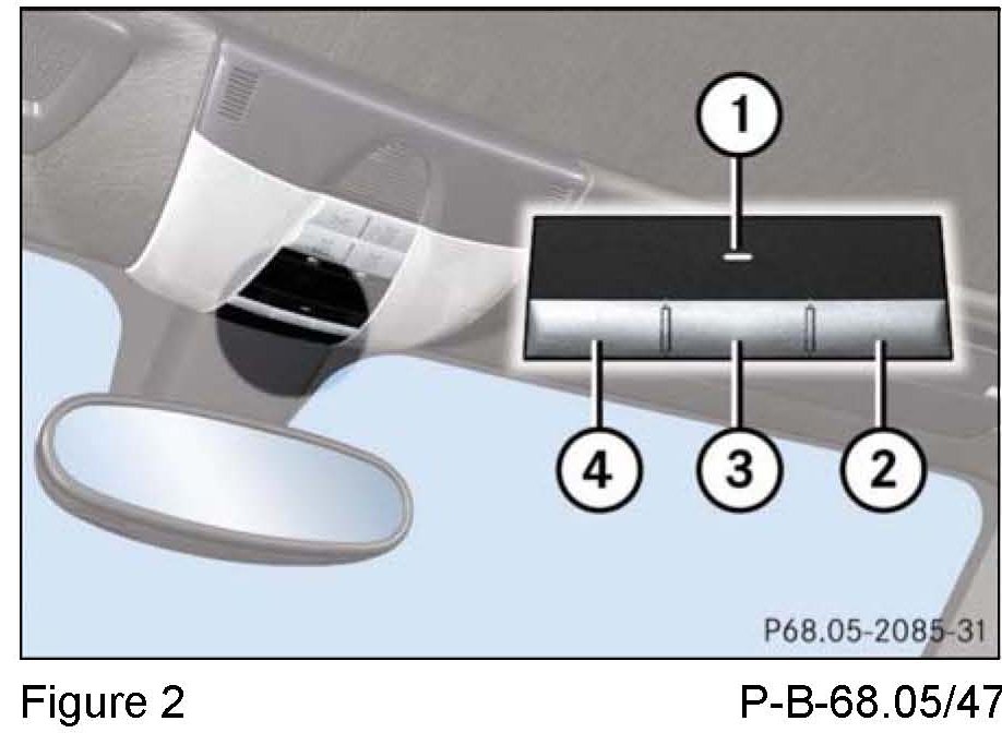 2. Simultaneously press and hold down the outer signal transmitter buttons (Figure 1 or 2, 2 and 4) for approximately 20 seconds until the indicator lamp (Figure 1 or 2, 1) flashes rapidly. Do not hold for longer than 30 seconds.