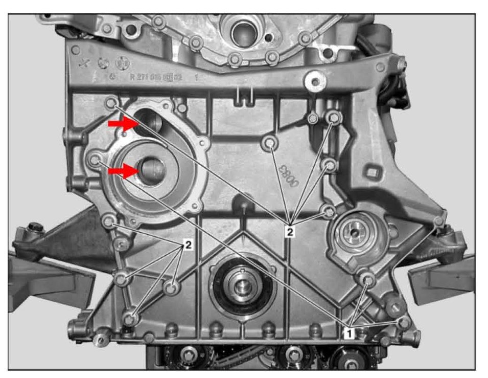 3. Check whether coolant emerges at the relevant separation point between the timing case cover and the crankcase.