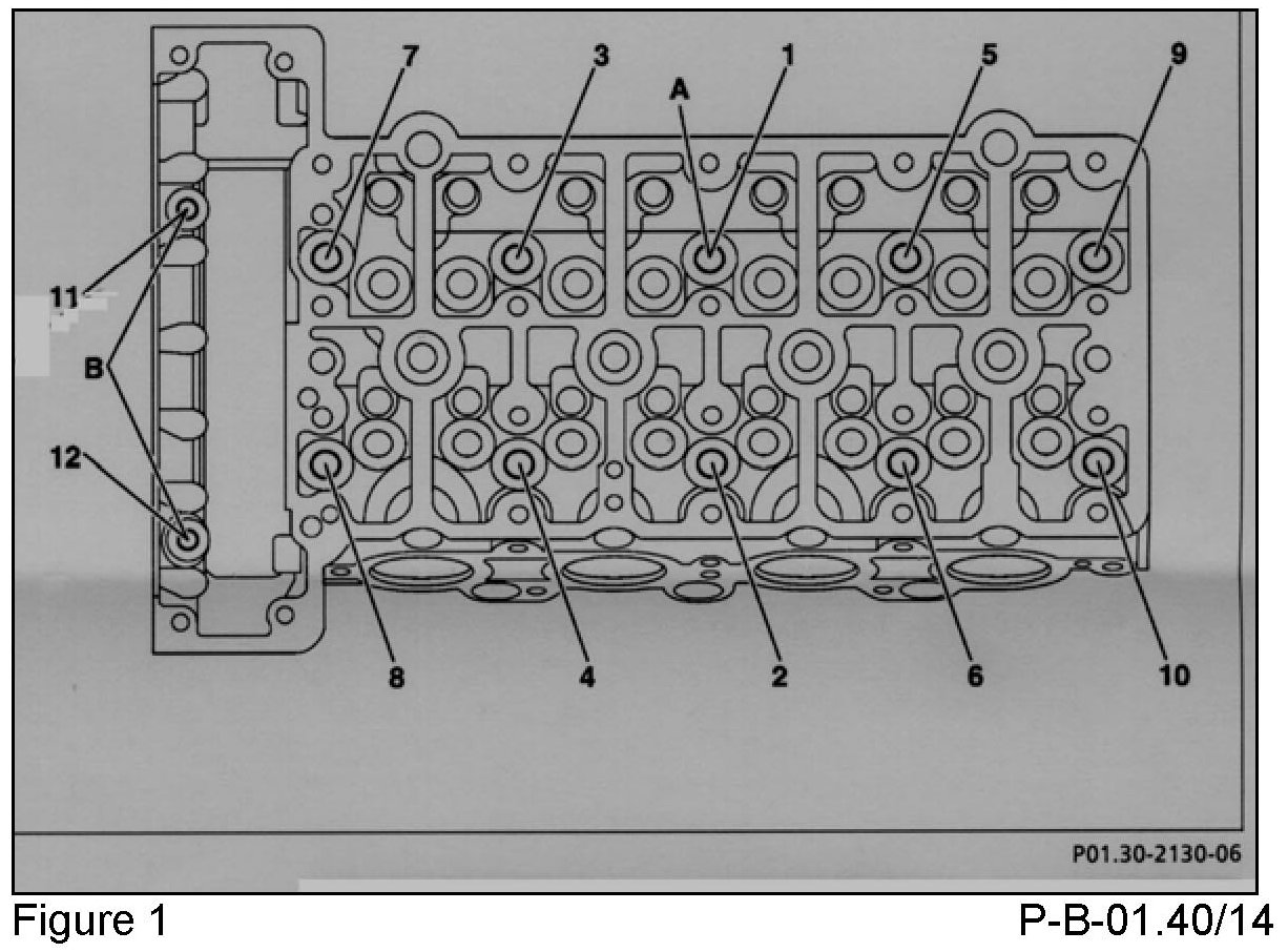 8. Insert cylinder head bolt and tighten. Refer to WIS Doc. No. AR01.30-P-5800QK.
