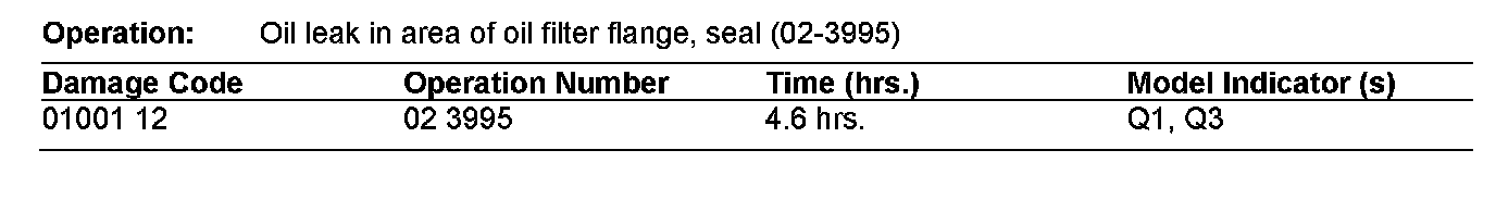 If you receive customer reports in the above model vehicles of engine oil leak, please check for leaking through the casting pores into the no. 6 cylinder head bolt hole to the outside (which is open to the bottom) and seal the cylinder head bolt hole threads in the area of the oil filter flange per the below procedure to resolve.
