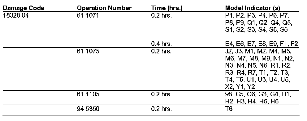 The following allowable labor operations should be used when submitting a warranty claim for this repair.