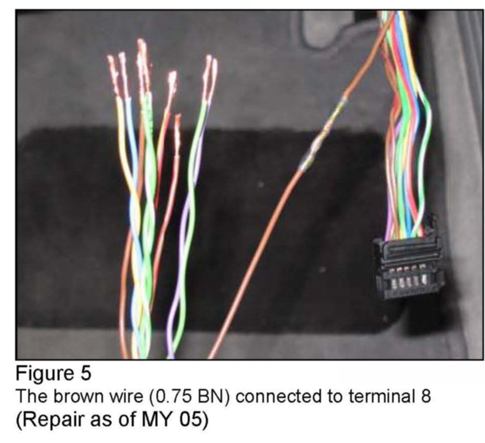 4. The repair harness is color coded to match the car side of the harness. Pins 8 and 12 of the SCM connector are brown wires and cannot be interchanged. Pins 5 and 11 are both green wires and cannot be interchanged. These wires should be cut and spliced one at a time to ensure that they are connected correctly.
