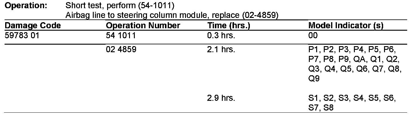 If you receive customer reports in the above model vehicles of the SRS light being illuminated accompanied by either of the diagnostic fault codes listed below, perform the following procedure. Replacement of the contact spiral is not necessary. All contact spirals returned will be subject to testing and may be debited if found to be operational.