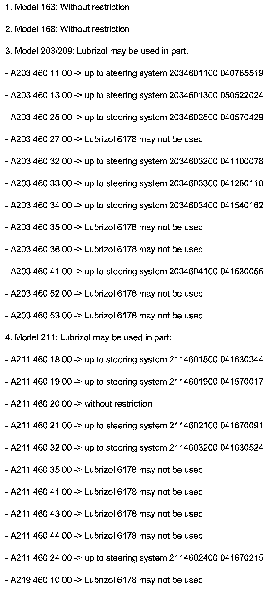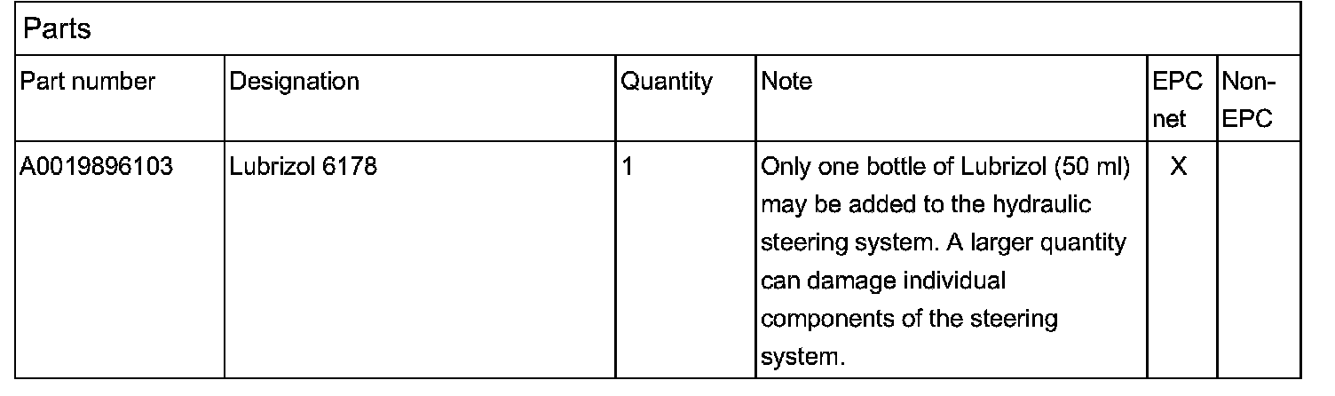- The additive Lubrizol 6178 may only be used for specific steering system number (refer to list below)!