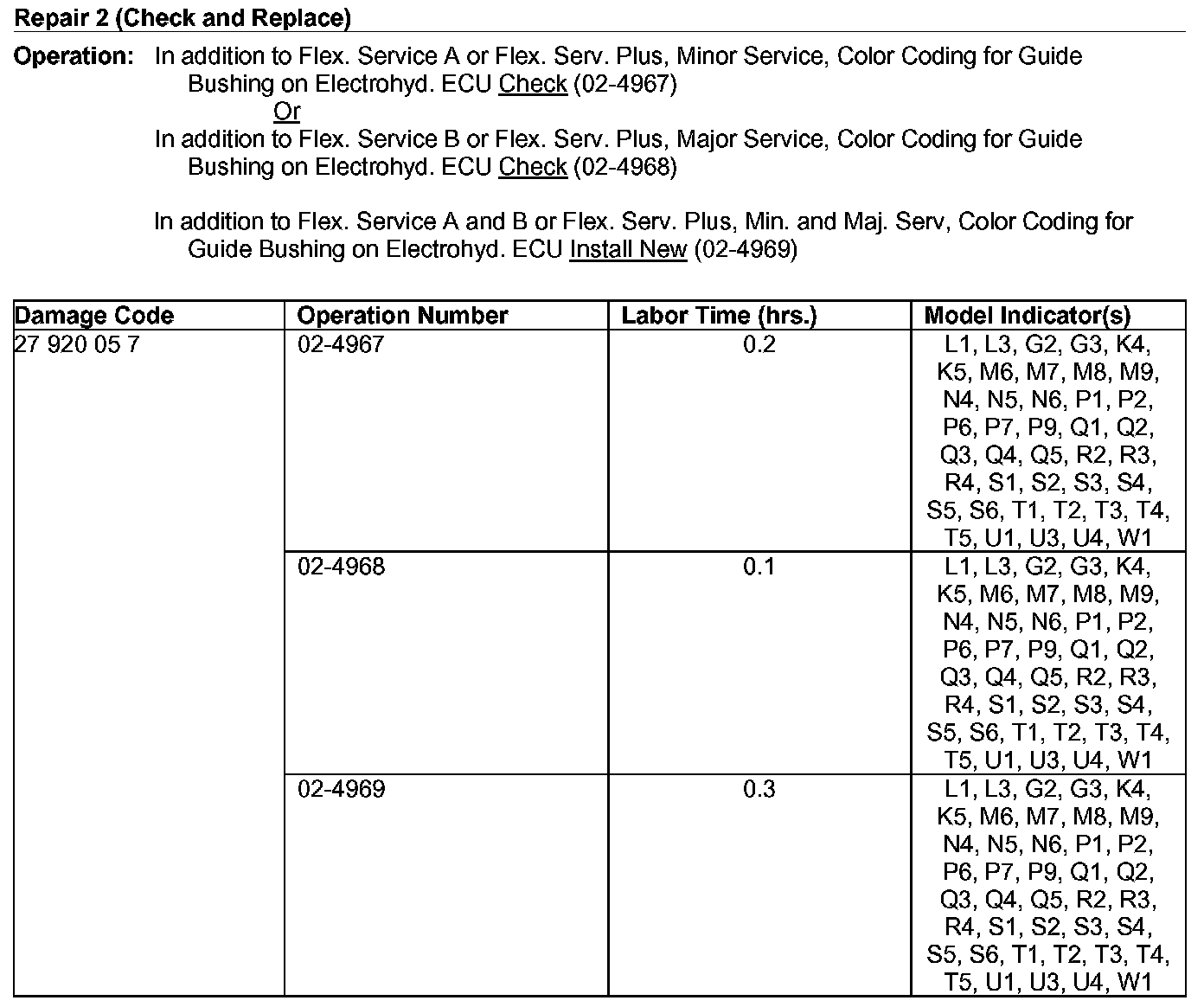 ^ The following allowable labor operation should be used when submitting a warranty claim for this repair:
