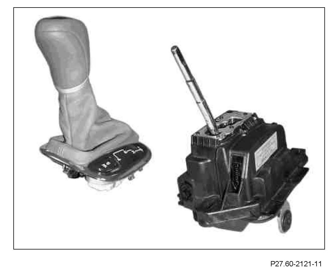 The selector lever is moved and positioned in the shift gate, which is not visible to the driver. All the selector lever positions are detected by the electronic selector lever module control unit (N15/5), coded and transmitted via the Controller Area Network-Bus Class C (engine compartment) (CAN-C) to the ETC [EGS] control unit (N15/3).