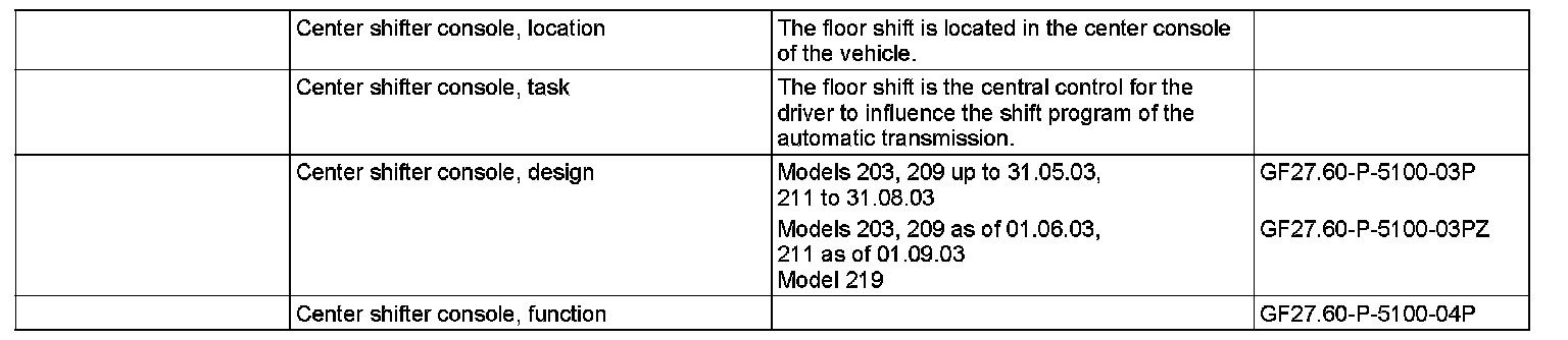 GF27.60-P-5100P Center shifter console, location/task/design/function