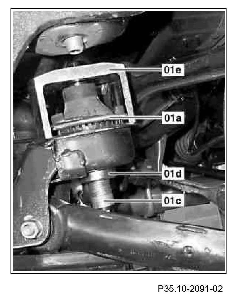 1 Press rubber mount (1a) out of rear axle carrier using extraction tool (01c, 01d, 01e).