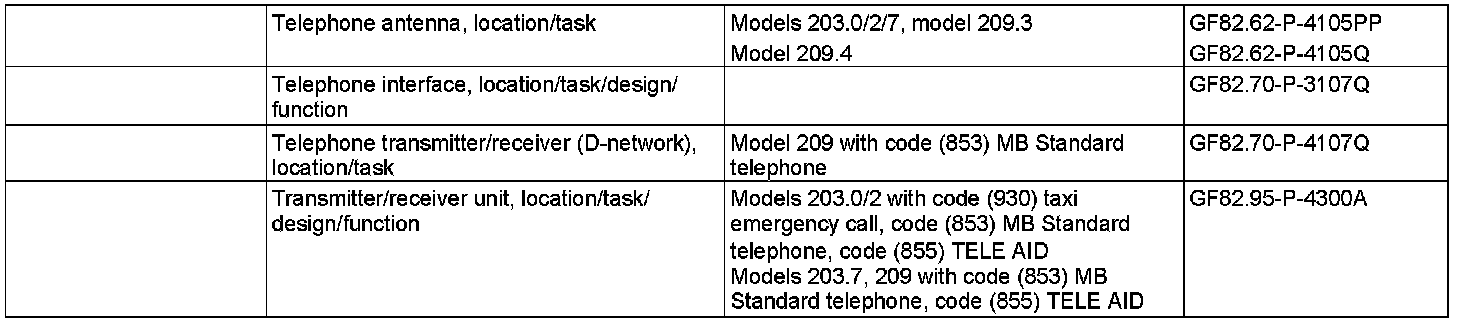 ^ With code (855) TELE AID (with telephone transmitter/ receiver and TELE AID, D2B (A35/17) and telephone handset (A34))